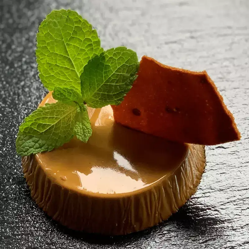 1. Tunmousse serveret med bagt tomat, dildmayo og sprødt rug.