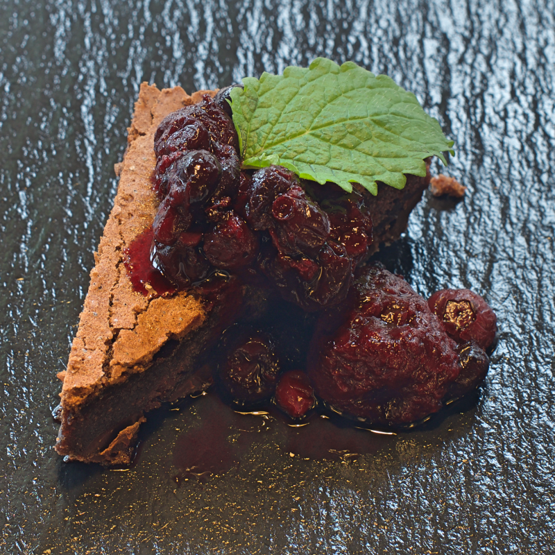 Tunmousse serveret med bagt tomat, dildmayo og sprødt rug.